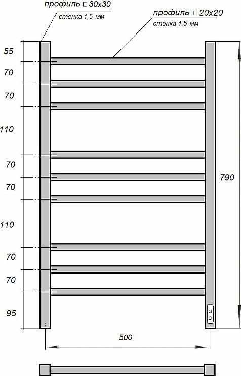 Полотенцесушитель электрический Point PN71858B П9 500x800 диммер справа черный