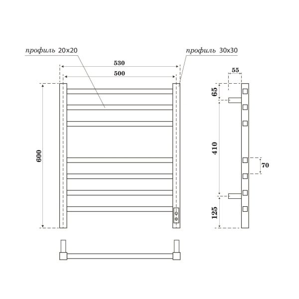 Полотенцесушитель электрический Point Вега PN71856GB П7 500x600, диммер справа графит блескАртикулPN71856GBБрендPointТипПолотенцесушитель ЭлектрическийФормаЛесенкаЦветГрафитМатериал изделияконструкционная стальСтрана производстваРоссияМежосевое расстояние, мм500КомплектацияПолотенцесушитель - 1 шт, кронштейны для крепления к стене - 3 шт, сетевой кабель - 1 шт, комплект скрытого подключения - 1 шт, паспорт/гарантийный талон - 1 штМощность, Вт90Площадь обогрева, м22.08ТаймерестьПоворотныйнетКоличество секций7Длина индивидуальной упаковки, см0.580Ширина индивидуальной упаковки, см0.640Высота индивидуальной упаковки, см0.100Объем0.037Гарантия2 годаТеплоносительсухой (нагревательный кабель)Теплоотдача, Вт208Тип шваэлектросварной