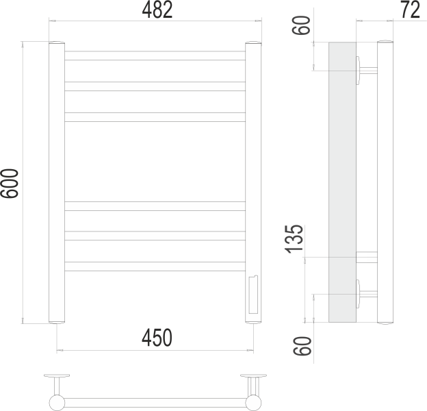 Полотенцесушитель электрический Terminus Аврора П6 450х600 электро КС 9003 матовый