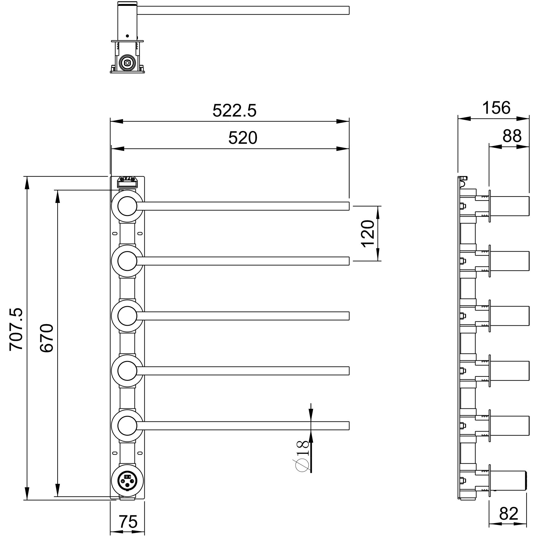Полотенцесушитель электрический встраиваемый WONZON & WOGHAND MÜNCHEN, Черный матовый (WW-A355-MB)