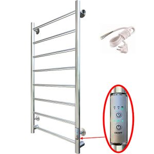 Выключатель с таймером на 2 и 4 часа встроен в коллектор полотенцесушителя.