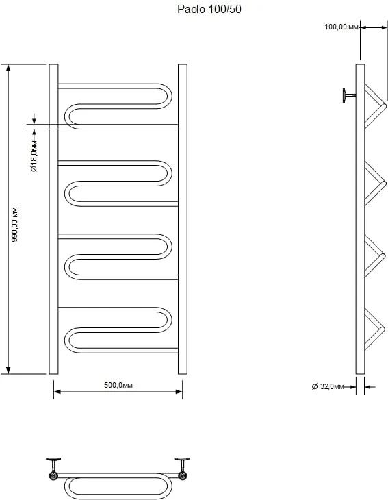 Полотенцесушитель водяной Aquanet Paolo 266734 100x50 см хром купить