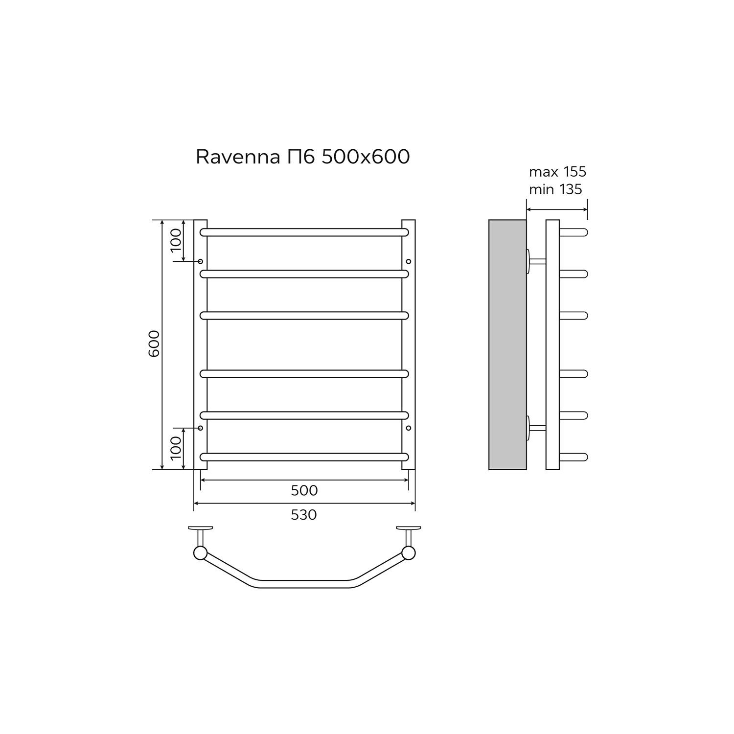 Полотенцесушитель водяной AZARIO RAVENNA AZ07156 500/600 6 секций, нижнее/диагональное подключение, 1/2, хром купить