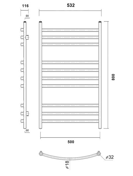 М/о расстояние (межосевое расстояние): 500Количество перекладин: 10Коллекция: КалипсоТип: водяныеЦвет: черныйШирина (мм): 532Высота (мм): 800Глубина (мм): 105-95Вес: 4,95Объем: 0,070Тэн/подключение: нижнееСтрана: РоссияГарантия: 10 лет