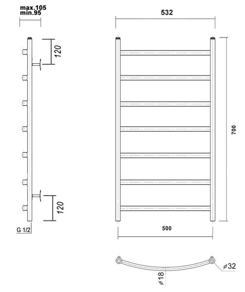 М/о расстояние (межосевое расстояние): 500Количество перекладин: 7Коллекция: КалипсоТип: водяныеЦвет: белыйШирина (мм): 532Высота (мм): 700Глубина (мм): 105-95Вес: 4,07Объем: 0,0618Тэн/подключение: нижнееСтрана: РоссияГарантия: 5 лет