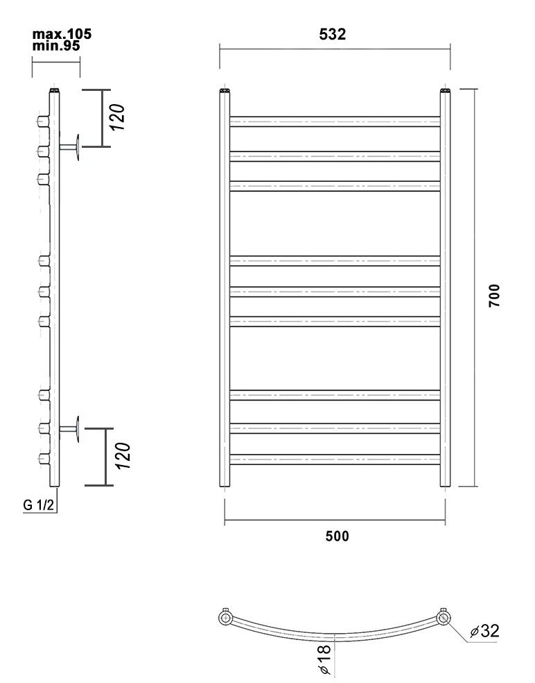 М/о расстояние (межосевое расстояние): 500Количество перекладин: 9Коллекция: КалипсоТип: водяныеЦвет: белыйШирина (мм): 532Высота (мм): 700Глубина (мм): 105-95Вес: 4,07Объем: 0,0619Тэн/подключение: нижнееСтрана: РоссияГарантия: 5 лет