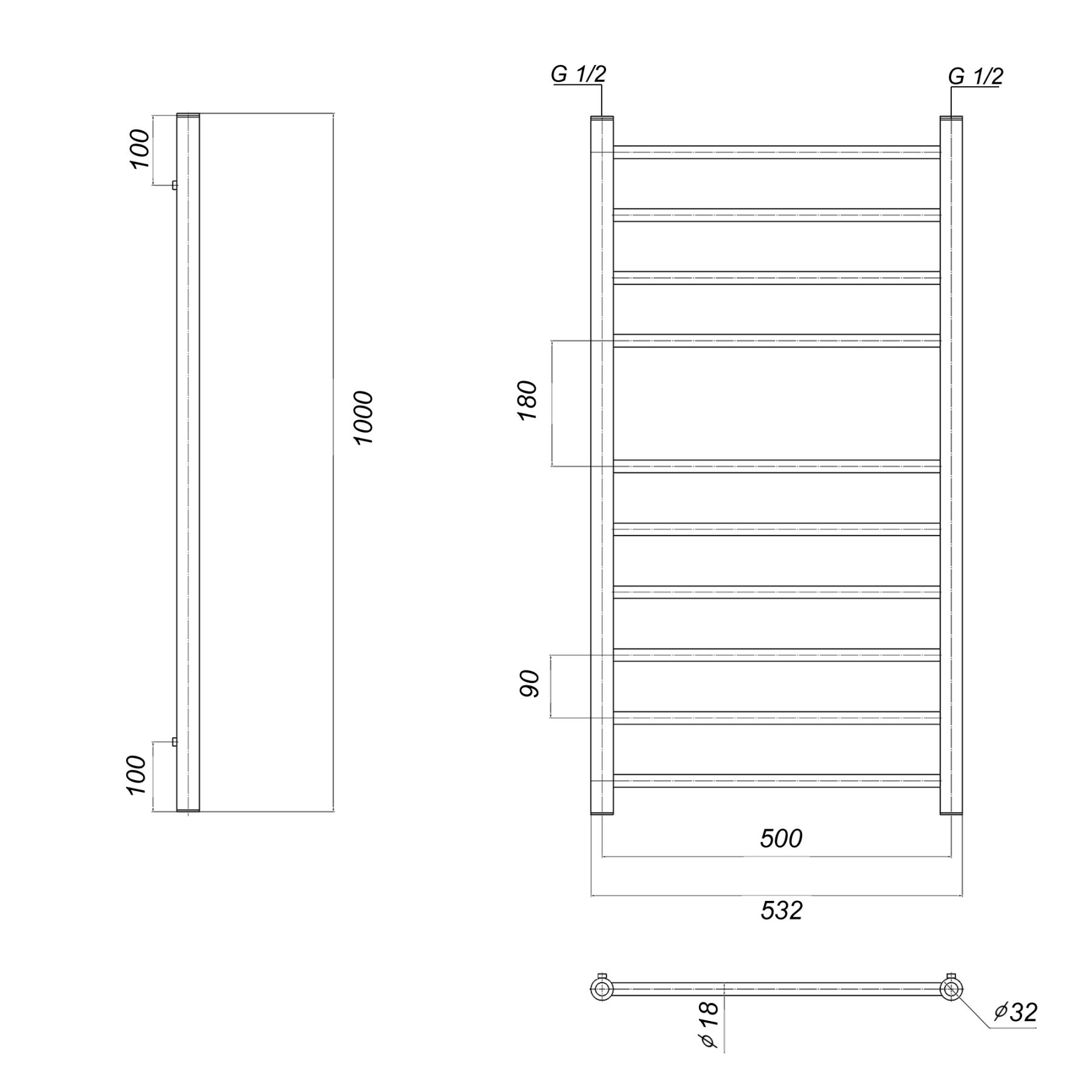 М/о расстояние (межосевое расстояние): 500Количество перекладин: 10Коллекция: МедеяТип: водяныеЦвет: золотоШирина (мм): 532Высота (мм): 1000Глубина (мм): 93-83Вес: 6,2Объем: 0,05Страна: РоссияГарантия: 10 лет