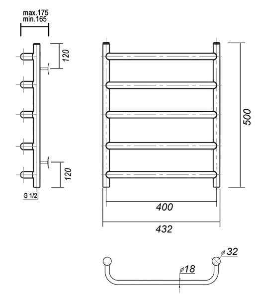 М/о расстояние (межосевое расстояние): 400Количество перекладин: 5Коллекция: СтефаноТип: водяныеЦвет: хромШирина (мм): 432Высота (мм): 500Глубина (мм): 175-165Вес: 3,2Объем: 0,0258Страна: РоссияГарантия: 10 лет