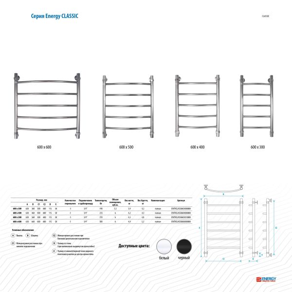 Полотенцесушитель водяной Energy Classic 600 x 400, ширина 46 см, высота 63 см, черный матовый, EWTRCLASS06040R905MПолотенцесушитель изготовлен из высококачественной импортной пищевой нержавеющей стали марки AISI 304 (08Х18Н10). Поверхность изделия окрашена по технологии цветного порошкового напыления - достоинства этой технологии в том, что получаемые изделия прочны, долговечны и экологичны. Сварка швов выполнена по специальной технологии TIG по международному стандарту EN 10217-7. Полотенцесушитель испытан при давлении 50 атм, составляющая его труба — 150 атм, благодаря чему имеет большой запас прочности.Произведен в России. Гарантийный срок - 5 лет.Комплектуется всем необходимым для монтажа. Вся фурнитура производится итальянской фирмой Smart.Комплектация полотенцесушителя:Полотенцесушитель - 1 шт
