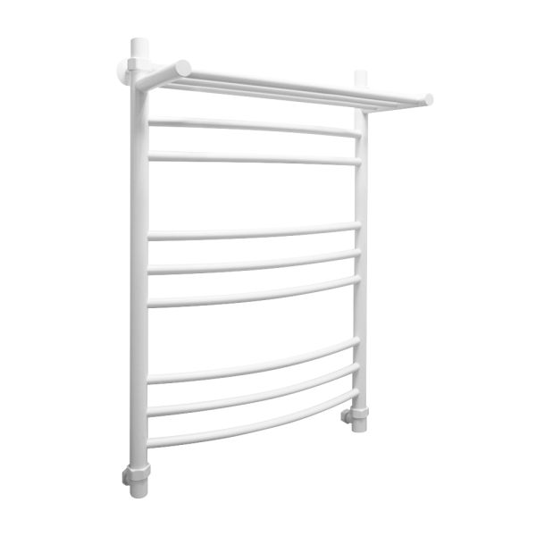 Водяной полотенцесушитель Energy Prestige Modus 800x500 RAL 9016 (белый матовый) - «лесенка c полкой» c выпуклыми перемычками, размещёнными группами. Дополнительная обогреваемая полка с 3 перекладинами увеличивает тепловую мощность и полезную площадь прибора, а также позволяет максимально удобно располагать на нем вещи для просушивания. Используется во всех системах горячего водоснабжения и отопления с рабочим давлением 3 - 15 атм при температуре теплоносителя до 105°С.Межцентровое расстояние: 800 мм (+/-5 мм) при боковом и диагональном подключении, 500 мм (+/-5 мм) при нижнем подключении.В комплектацию входят эксцентрики, позволяющие отрегулировать межцентровое расстояние.Полотенцесушитель изготовлен из высококачественной импортной пищевой нержавеющей стали марки AISI 304 (08Х18Н10). Поверхность изделия окрашена по технологии цветного порошкового напыления - достоинства этой технологии в том, что получаемые изделия прочны, долговечны и экологичны. Сварка швов выполнена по специальной технологии TIG по международному стандарту EN 10217-7. Полотенцесушитель испытан при давлении 50 атм, составляющая его труба — 150 атм, благодаря чему имеет большой запас прочности.Произведен в России. Гарантийный срок - 5 лет. Комплектуется всем необходимым для монтажа. Вся фурнитура производится итальянской фирмой Smart.Комплектация полотенцесушителя: