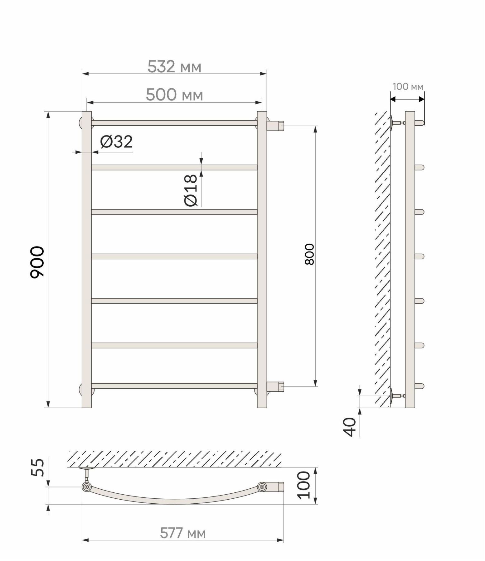 Полотенцесушитель имеет дугообразные перекладины, что очень удобно при эксплуатации.