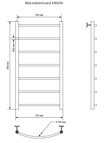Полотенцесушитель водяной Indigo Arc LAW100-50 100x50 см хром
