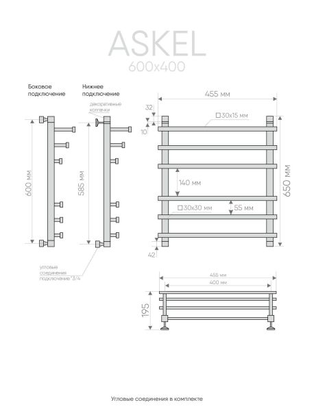 Askel это стильная современная профильная модель водяного полотенцесушителя, коллектор и перекладины выполнены из квадратной трубы.