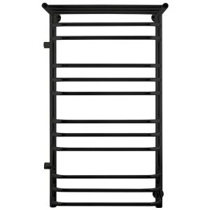 Полотенцесушитель водяной INDIGO Brace с полкой со скобообразными перекладинами и боковым подключением, выполнен в цвете «Черный Муар».  Полотенцесушитель с полками одна из самых популярных моделей, так как она позволяет дополнительно разместить на изделии полотенца и халаты.