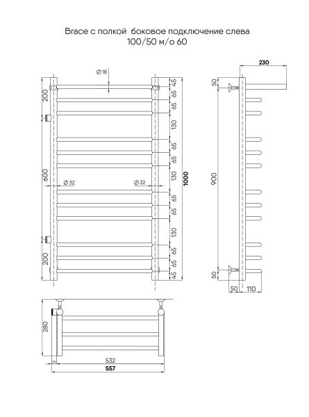 Полотенцесушитель водяной INDIGO Brace с полкой со скобообразными перекладинами и боковым подклю... Подробнее