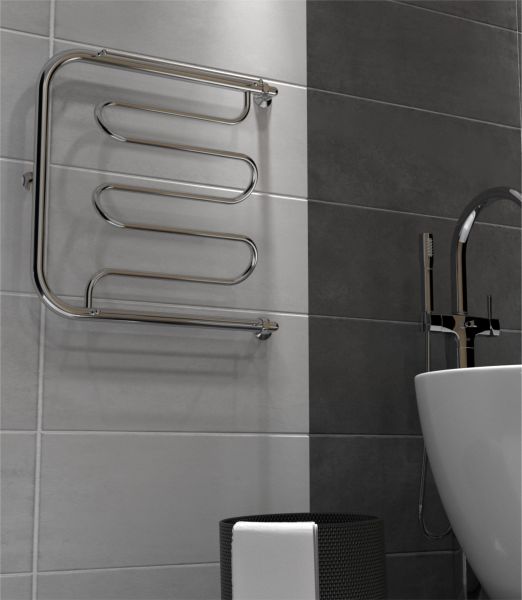 Универсальность изделия предусматривает монтаж на правую или левую сторону, а качественная металлообработка в местах соединений обеспечивает плотное прилегание прокладки. Изделие проходит тщательный этап полировки, поэтому обладает безупречным блеском. Полотенцесушитель водяной с полкой удобен тем, что на нем можно дополнительно компактно хранить и подсушивать текстильные изделия.