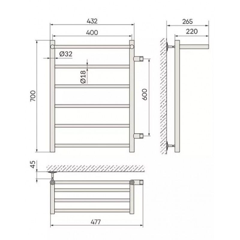 Полотенцесушитель водяной Indigo Line LLSHSW70-40L-б/п-60 подключение слева с полкой 70x40 см хром