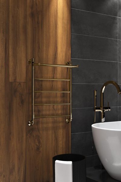 Роскошный золотой оттенок прекрасно дополнит любой интерьер ванной комнаты. Нержавеющий полотенцесушитель прослужит долго, не теряя своего первоначального вида. Термодиффузионный метод окрашивания.