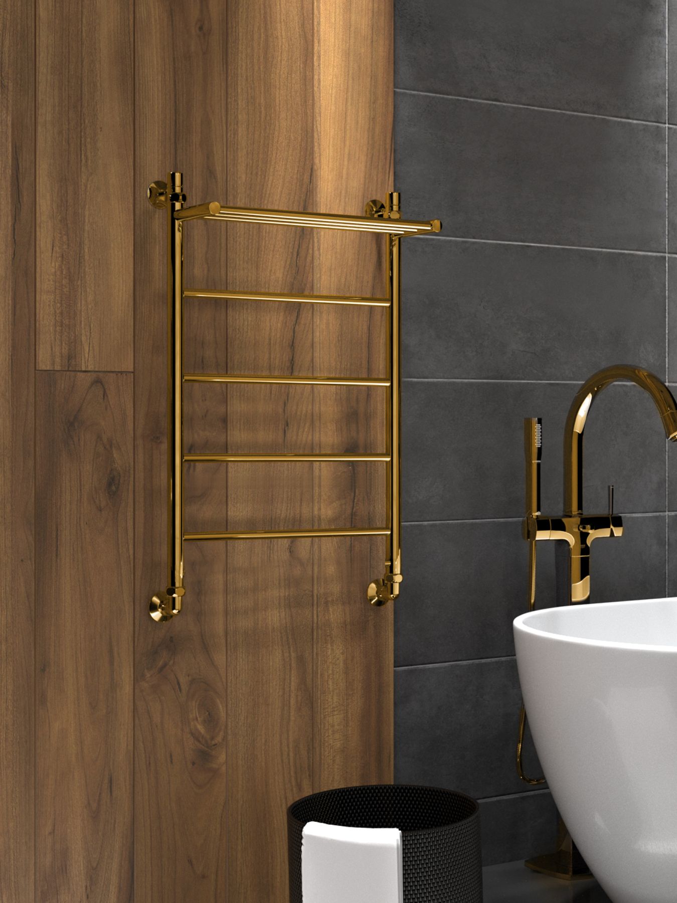 Полотенцесушитель водяной Indigo Line LLSHW80-50GDPK3 с полкой 80x50 см золото купить
