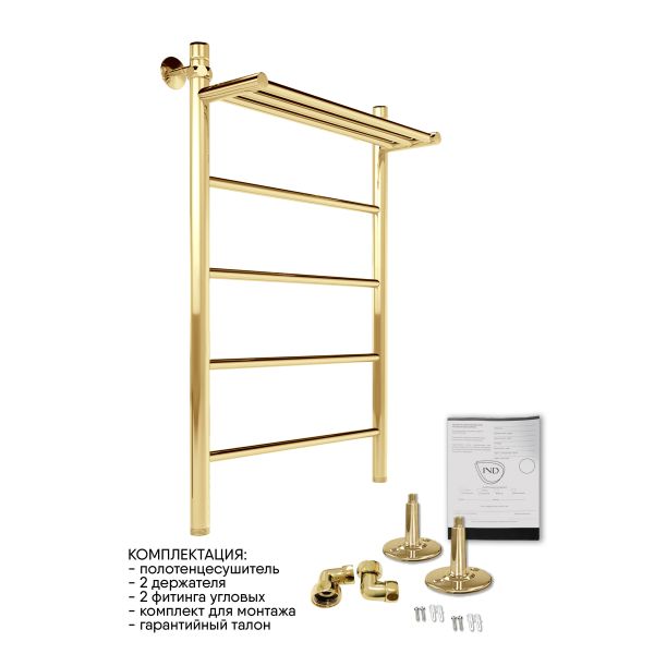 Полотенцесушитель водяной Indigo Line LLSHW80-50GDPK3 с полкой 80x50 см золото