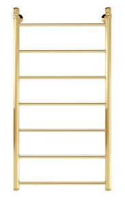 Водяной полотенцесушитель серии «Лесенка» Line золотого оттенка с безупречным блеском. Простой, но стильный, изготовлен из высококачественной нержавеющей стали. Идеально сочетается с золотой сантехникой или интерьером в классическом стиле.