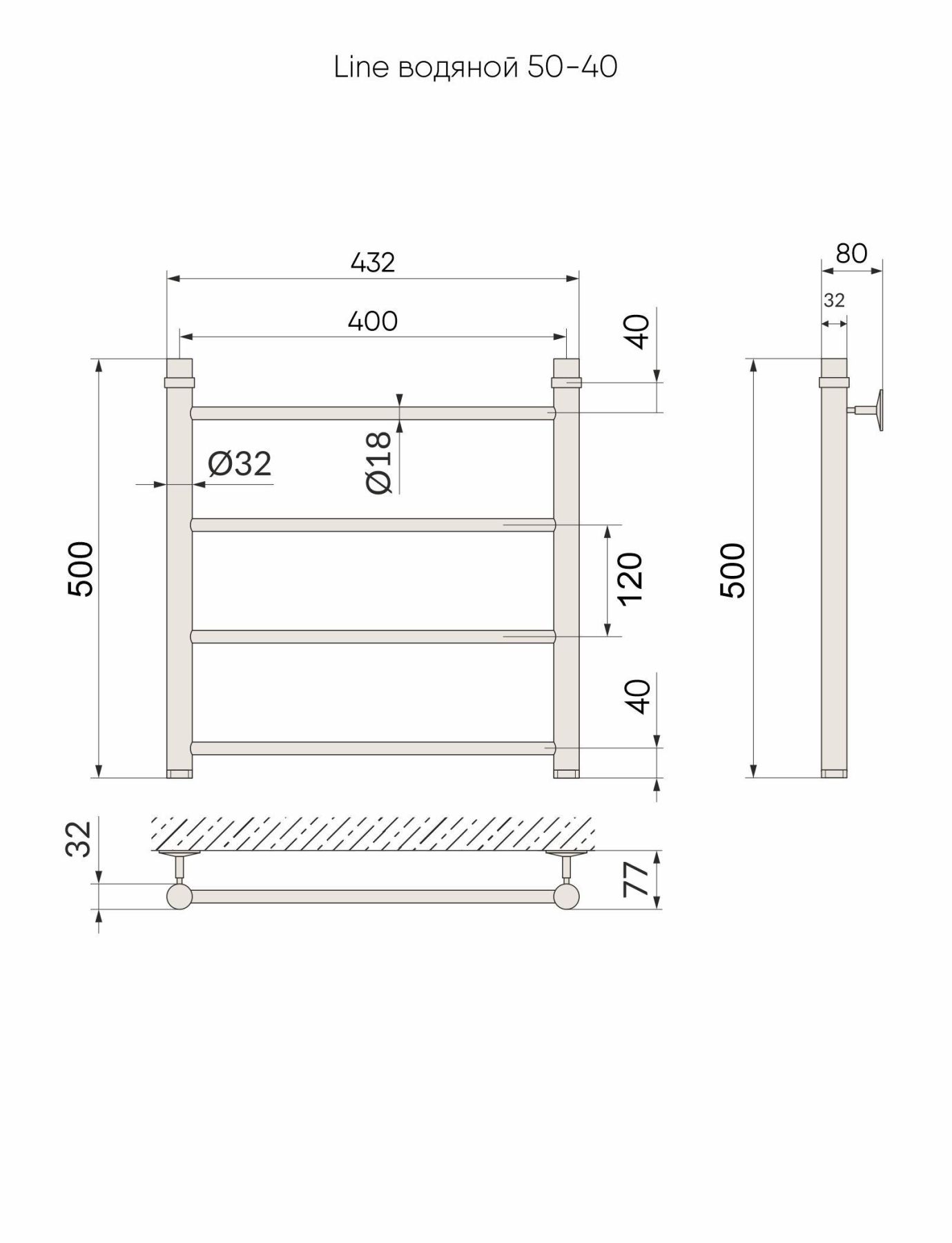 Водяной полотенцесушитель серии «Лесенка» Line имеет большое количество перекладин, что удобно для сушки большого количества текстильных изделий.
