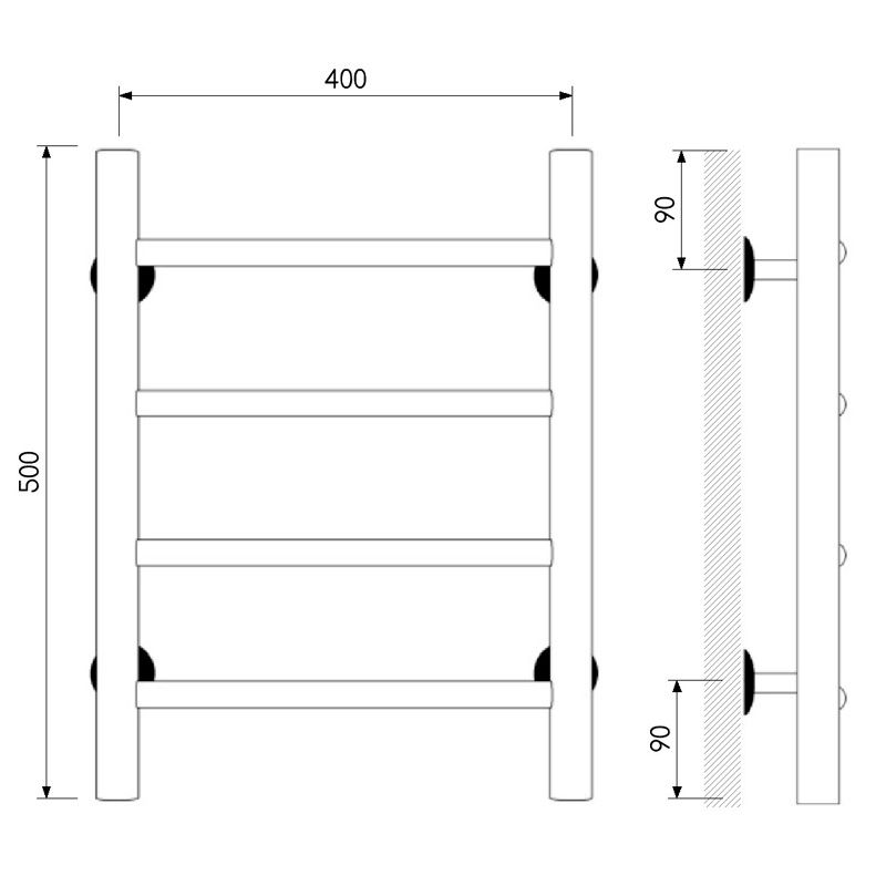 Полотенцесушитель изготовлен из нержавеющей стали — износостойкого и не подверженного коррозии материала, легко выдерживающего агрессивную среду систем отопления.