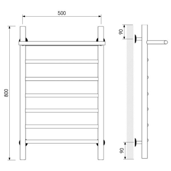 Полотенцесушитель водяной Laris Классик 73208024ЧМ с полкой П7 50x80см чёрный матовый