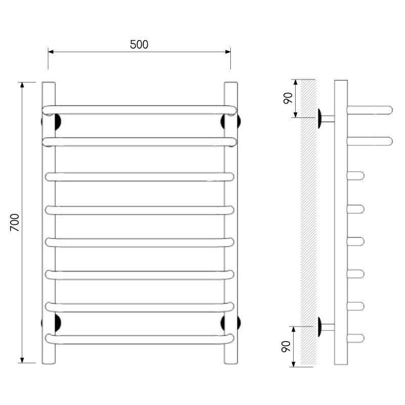 Полотенцесушитель водяной Laris Стандарт 73208012ЧМ с полкой П6 50x70см чёрный матовый купить
