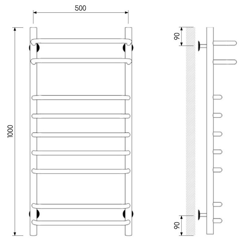 Полотенцесушитель изготовлен из нержавеющей стали — износостойкого и не подверженного коррозии материала, легко выдерживающего агрессивную среду систем отопления.
