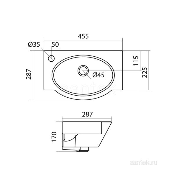Полукруглая раковина Santek Форум 45 отверстие под смеситель слева 1WH110542 купить
