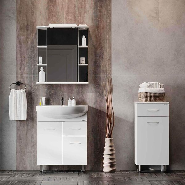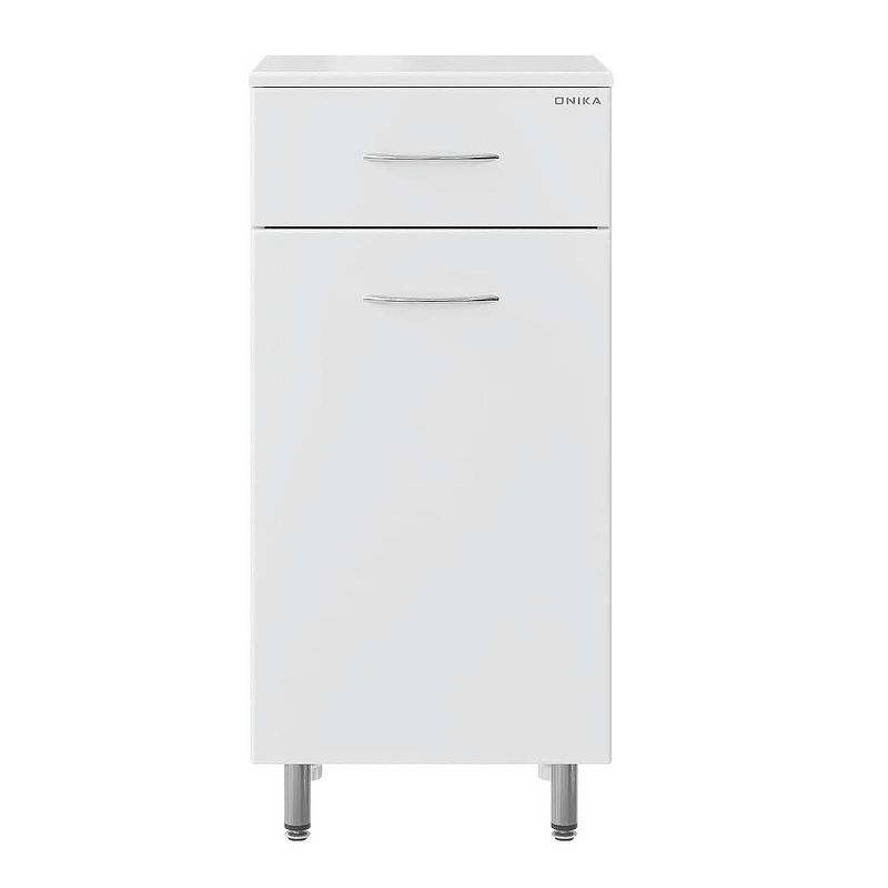Напольный полупенал для ванной комнаты Onika КАПРИЗ 40, благодаря простому минималистичному дизайну, белой глянцевой поверхности, подойдет под любой интерьер ванной комнаты.