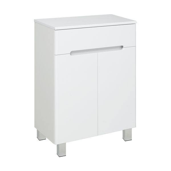 Тумба в ванную (полупенал) с одним выдвижным ящиком и двумя распашными дверками. В нижнем отделении - одна внутренняя полка. Петли со встроенным доводчиком, ящик на шариковых направляющих полного выдвижения.