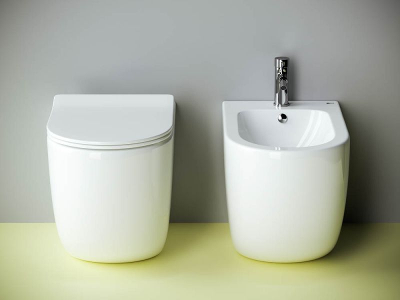 Напольный пристенный унитаз-соло Metropol Rimless, глубокий смыв, горизонтальный (универсальный) выпуск, с крепежом, ультра тонким сидением с функцией плавного закрытия, дюропласт