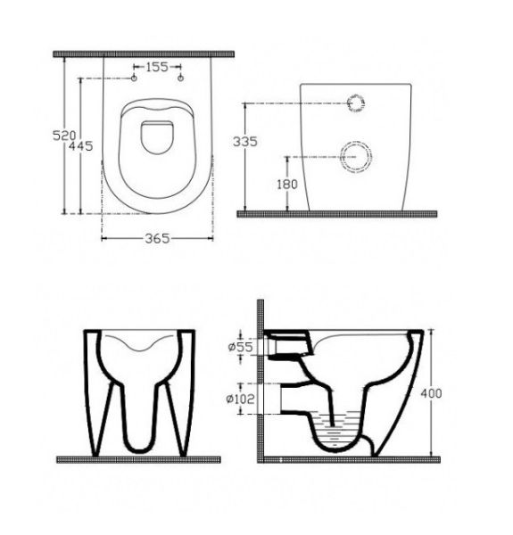 • Укороченный унитаз: