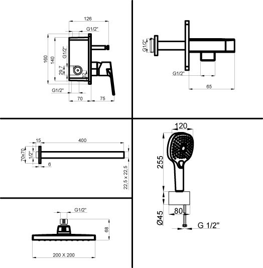 • Размер верхнего душа, мм 200