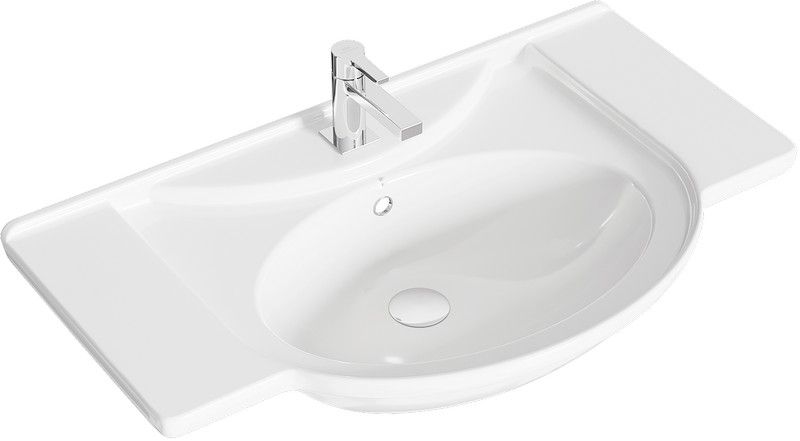 Основная линия керамических умывальников для мебели. Округлая форма чаши с достаточно большим пространством на боковых полочках. Универсальный дизайн подходящий к каждому стилю ванной мебели.