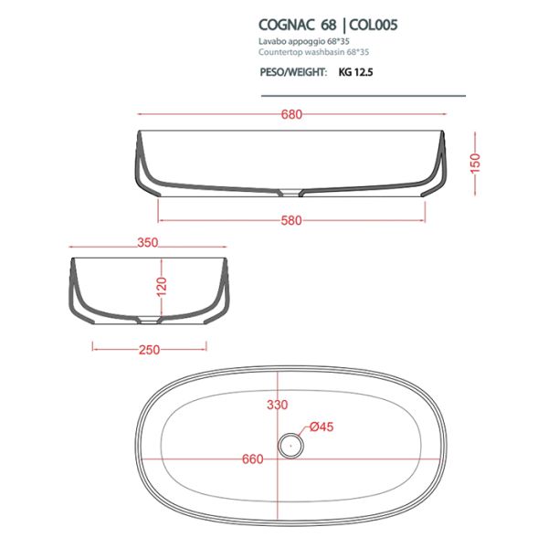 Раковина ArtCeram Cognac COL005 12 00 giallo zinco 68 смCOL005 12 00