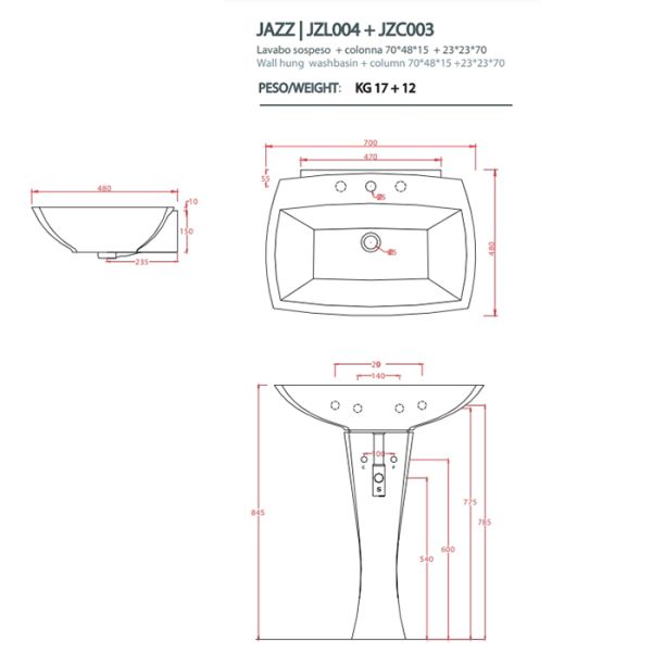 Раковина ArtCeram JAZZ JZL004 01 00 белая 70 смArtCeram JAZZ JZL004 01 00 Раковина подвесная, размер 70х48х15 см, в комплекте с креплениями к стене. С переливом; одно отверстие под смеситель готово. Может быть укомплектована колонной JZC003 01 00 (в комплект поставки не входит). Цвет белый глянцевый.