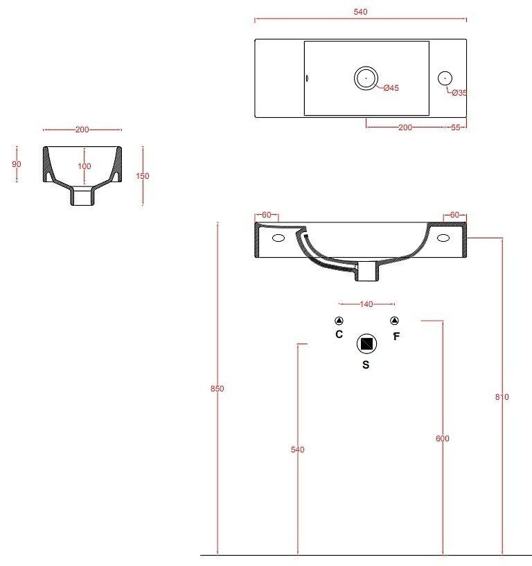 • Отверстия под смеситель: