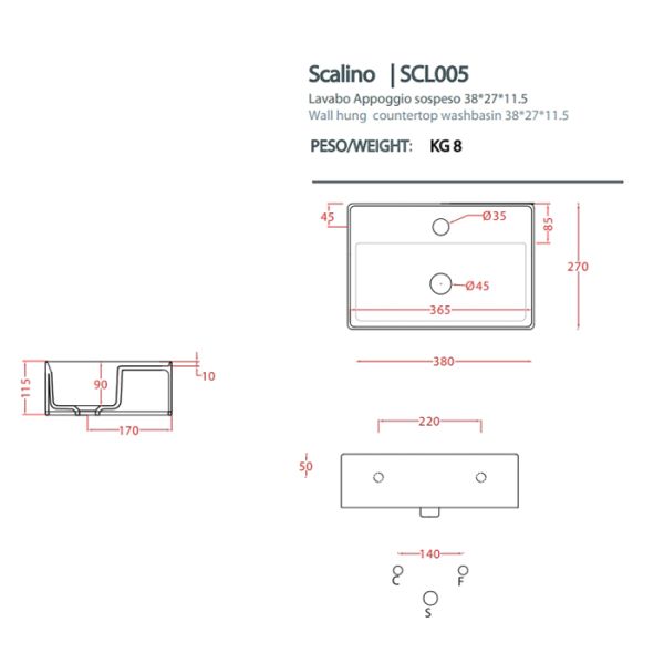 Раковина ArtCeram Scalino SCL005 01 00 белая 38 смSCL005 01 00