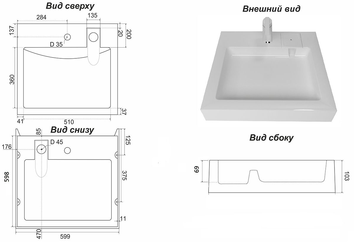 - Материал раковины литьевой мрамор