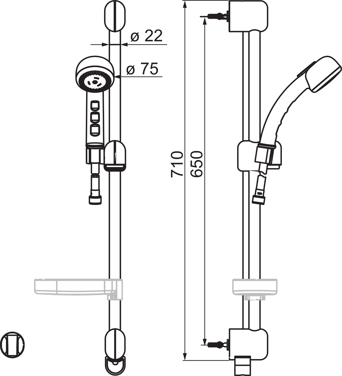 • Размер ручного душа, см: