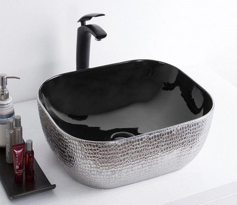 Раковина CeramaLux D1333H021 черно-серая 50 смПодходит для ванных комнат различной планировки в современном стиле и отличается стильной и изящной формой.Материал: санфаянс.В комплекте поставки: раковина.