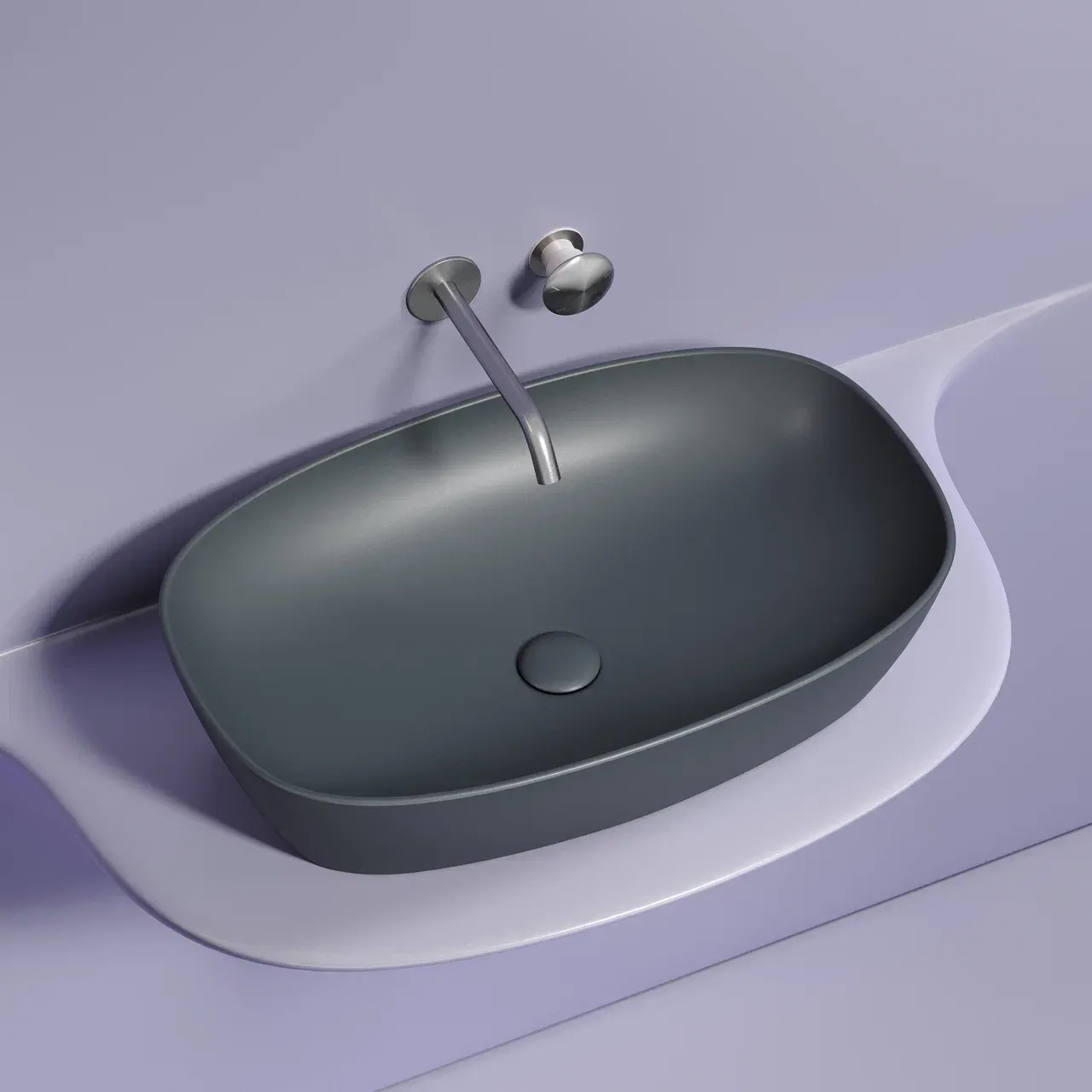 Умывальник чаша накладная овальная (цвет Темный Антрацит Матовый) Element 600*380*138мм