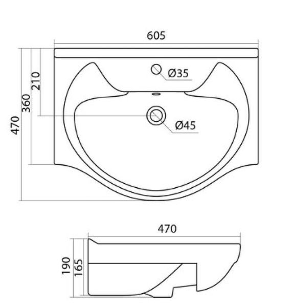 Размер (ШхВхГ): 605х190х470 мм.