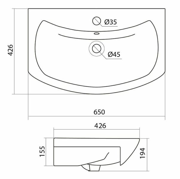 Размеры (ШхВхД): 650х194х426 мм.