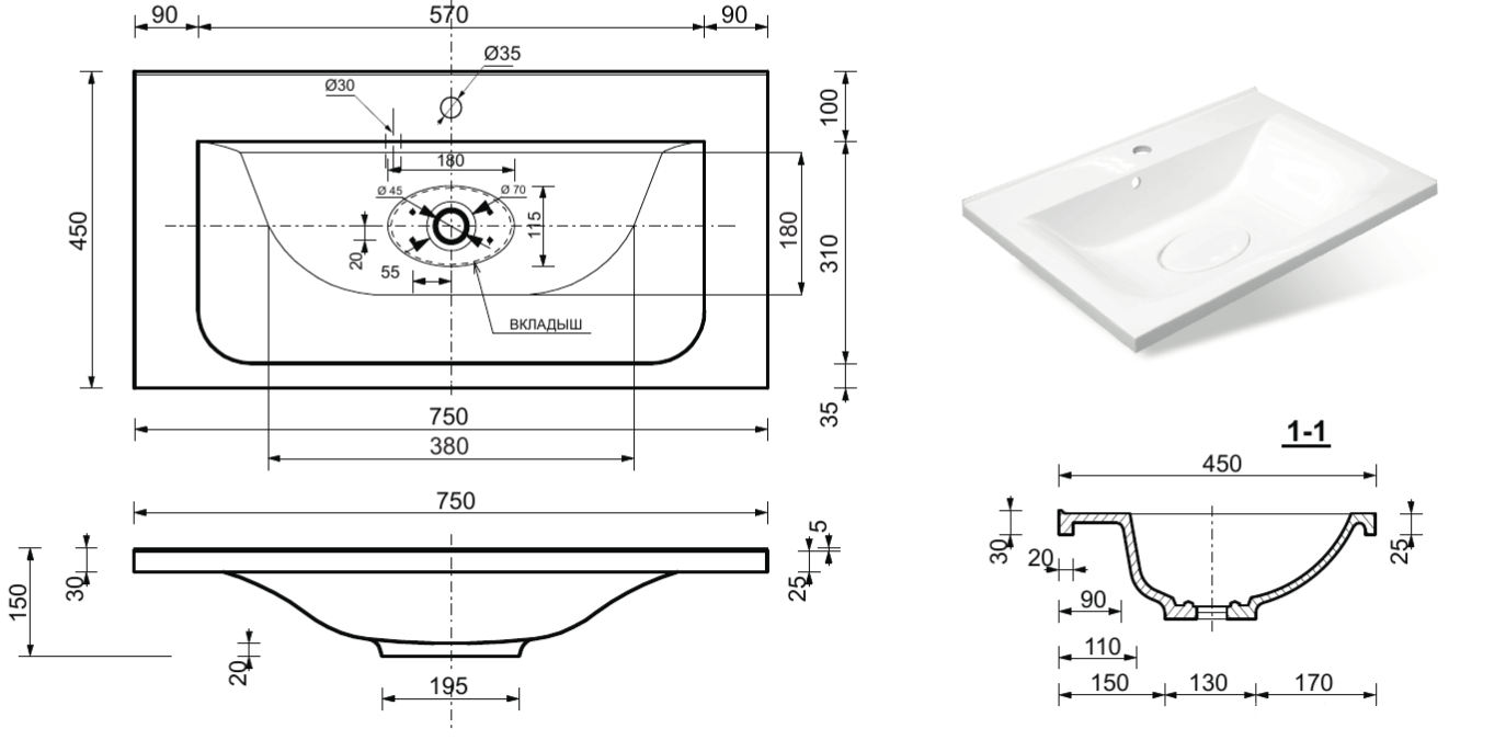 • Отверстия под смеситель: