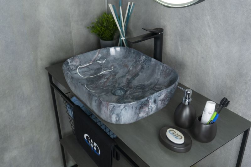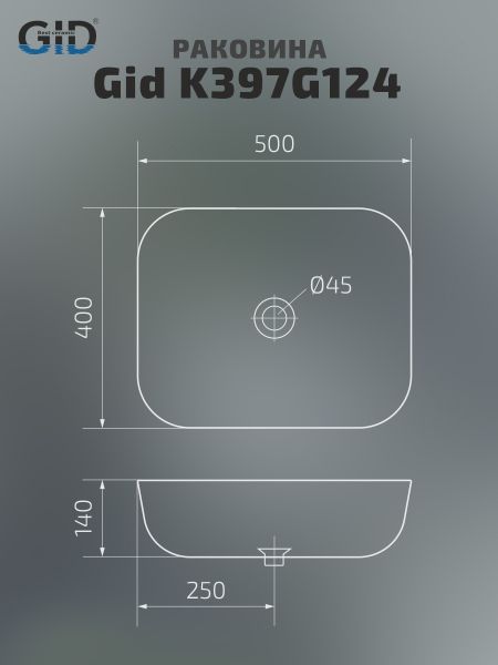 Серия Geometrico с прямоугольной формой: стиль и практичность с испанским качеством и европейскими стандартами. Раковина накладная GiD K397G124 — элегантная модель прямоугольной формы, изготовленная из высококачественной керамики с глянцевой поверхностью, создающей эффект натурального камня. Её строгий и современный дизайн идеально подойдёт для ванных комнат в минималистичном или современном стиле. Модель не имеет отверстия под смеситель, что позволяет использовать различные варианты настенных или встраиваемых смесителей, предоставляя свободу в дизайне интерьера. Раковина предназначена для установки на столешницу, подчёркивая стильный и функциональный интерьер ванной комнаты.