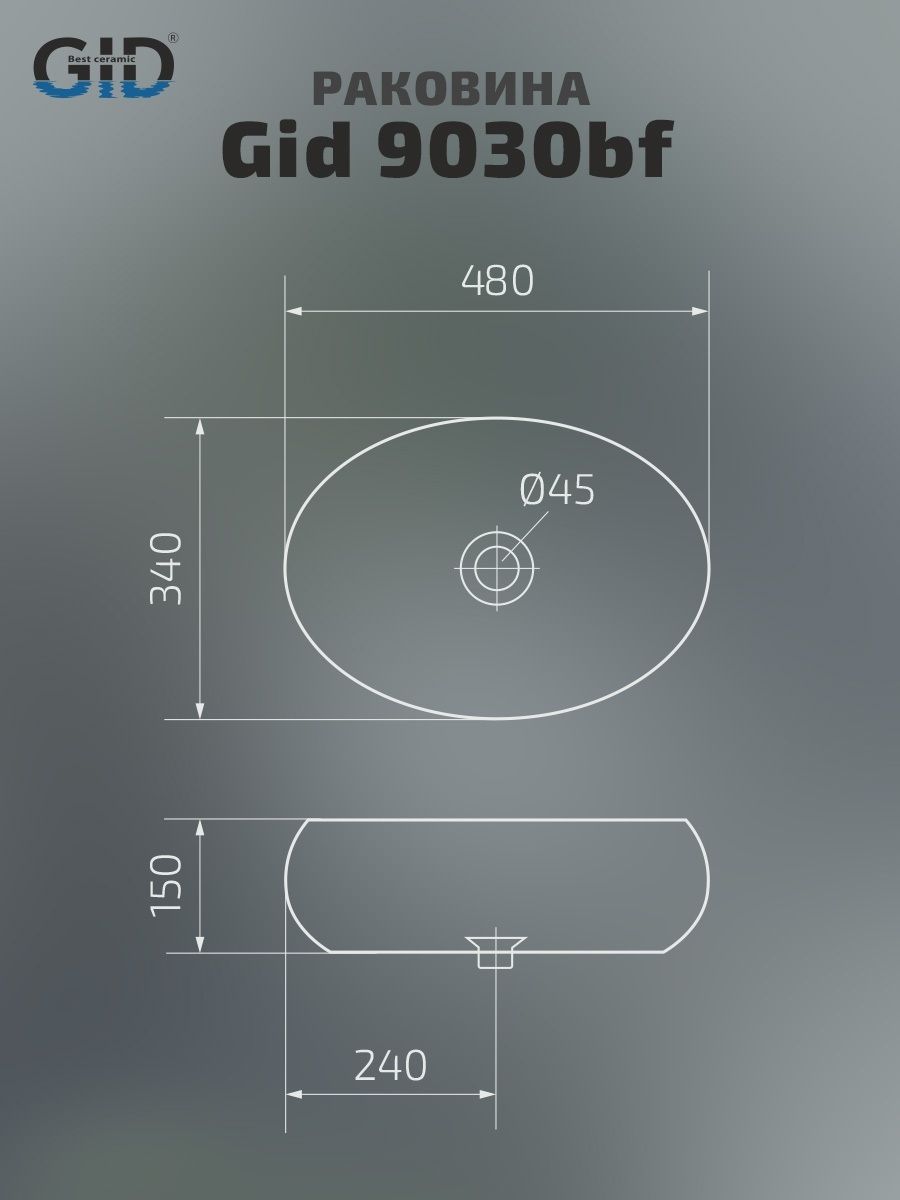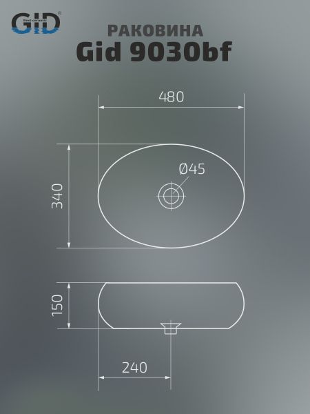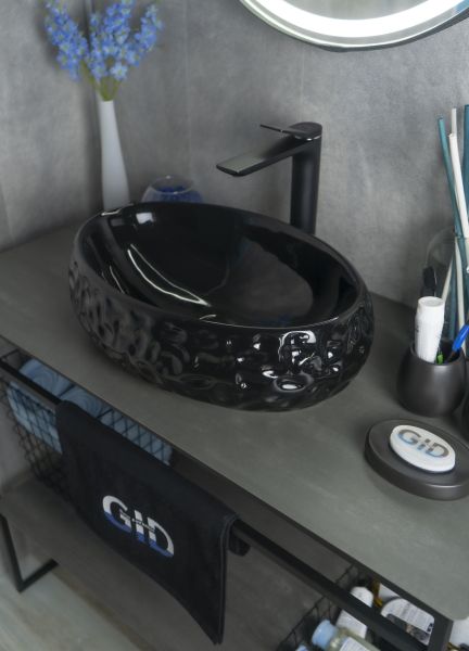 Раковина Gid 9030bf 52232 накладная черная глянцевая 48x34x15 купить